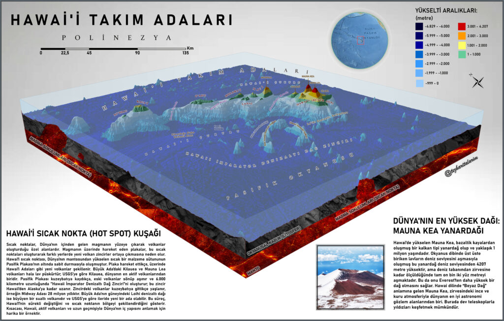 Hawai’i Takım Adaları ve Hot Spot Kuşağı 3B Batimetri Haritası